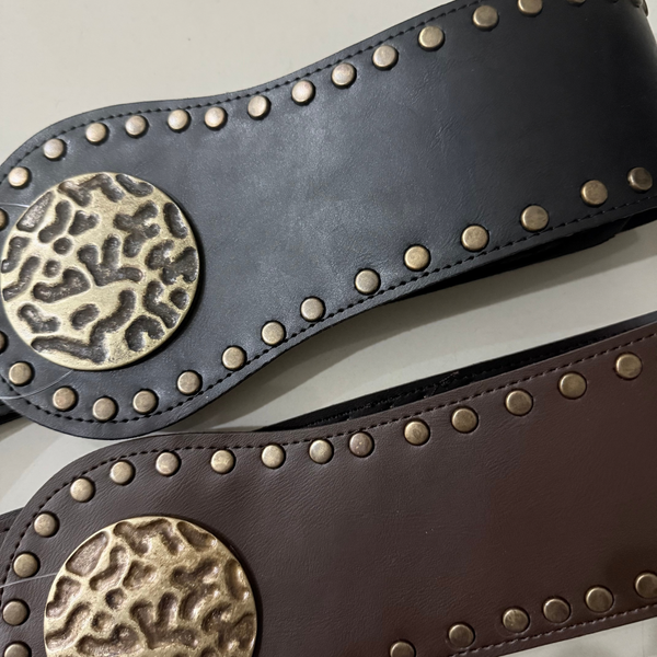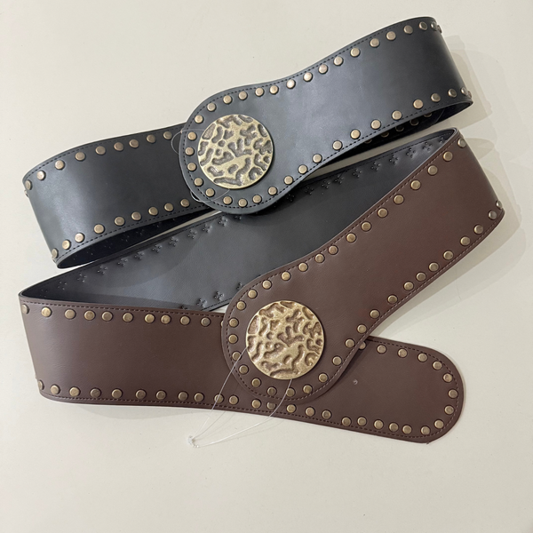 🔹 Faja HAS con detalle tachas oxido dorado y hebilla metálica en mismo tono
