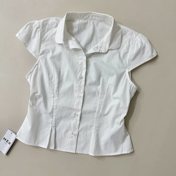 🔹 Camisa entallada CURVY, con detalle pinzas sutiles al frente, manga corta.