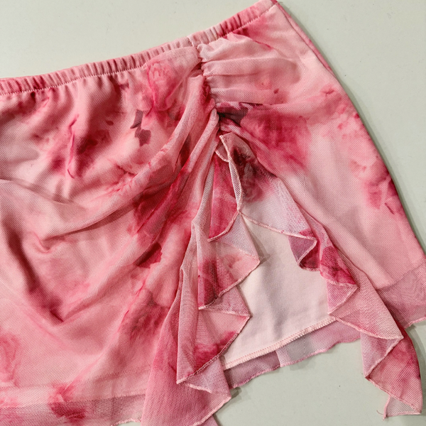 🔹 Mini DANA de Microtull estampado con detalle frunce y caída flecos, tiro bajo