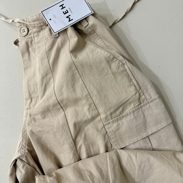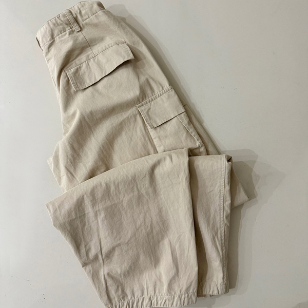 Pantalón Baggy ARCHE, estilo cargo, con bolsillos superpuestos en caderas y bolsillos cargo laterales y solapa en la cola. Tiene un cordón para regular en cintura.