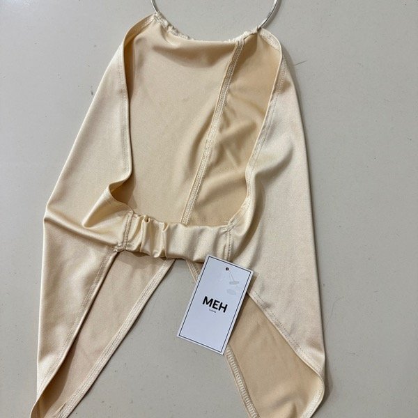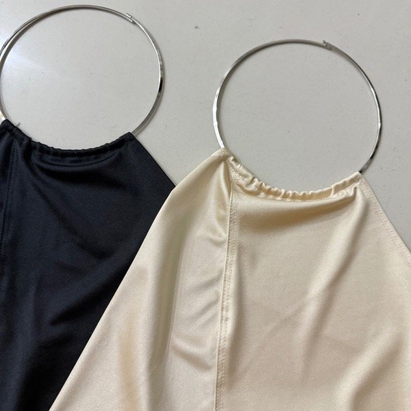 🔹 Top KRAVITZ de satén, con detalle collar metálico con apertura. Espalda descubierta.