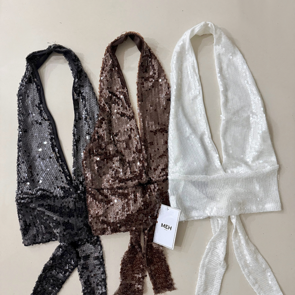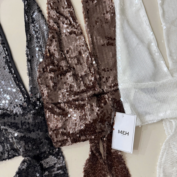 🔹 Top con full lentejuelas escote marilyn con tiras para atar en espalda