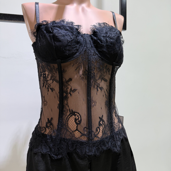 🔹 Corset BIBI, de fulll encaje con ballenas medias, forro en tasas, breteles regulable, y cinta corsetera en espalda