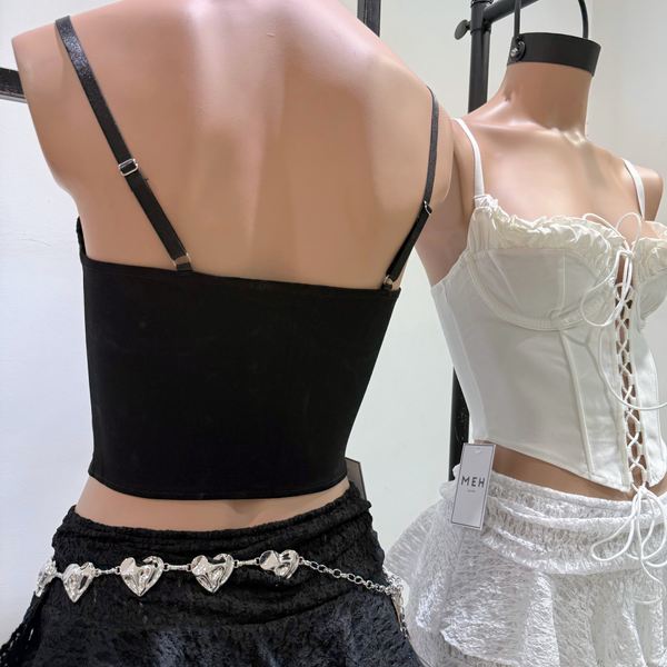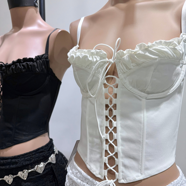 🔹 Corset emilse con cordones medios cruzados regulables, breteles regulables