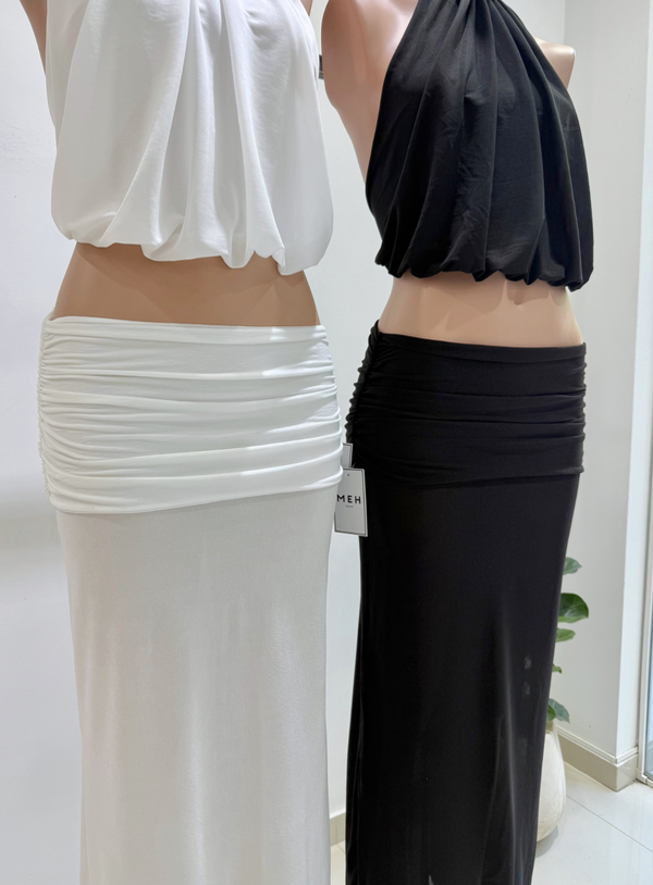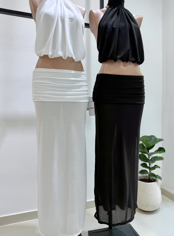 🔹 Falda larga de Microtull con doble forro superior con detalles frunces laterales
