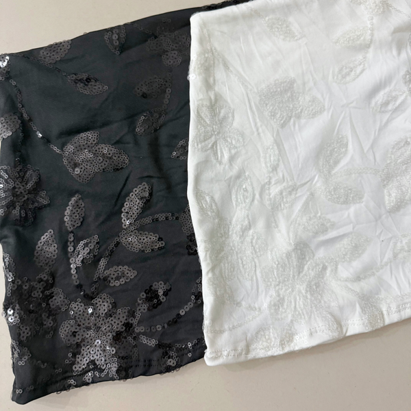 🔹 Mini ÁGATHA, de microfibra con full bordado con sutiles lentejuelas, tiro bajo.