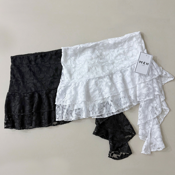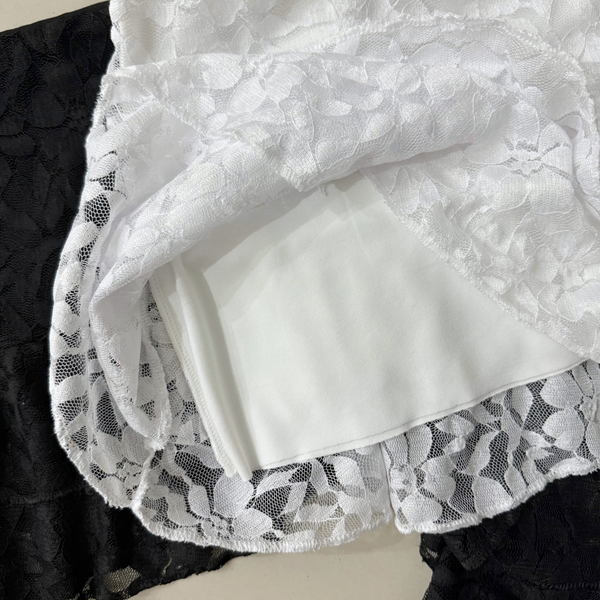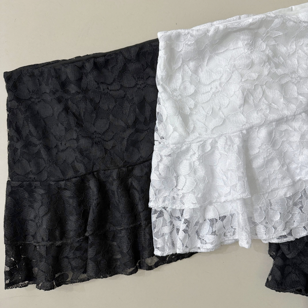 🔹 Mini de encaje con mini interna de microfibra, caida de encaje. Tiro bajo