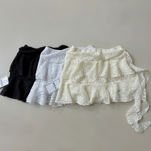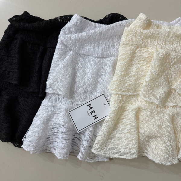🔹 Mini de encaje TUMTUM viene con short por debajo. Modelo de encaje con volados y volado lateral caído
