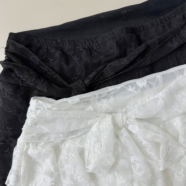 🔹 Mini de encaje con lazo y forro interno. Tiro bajo