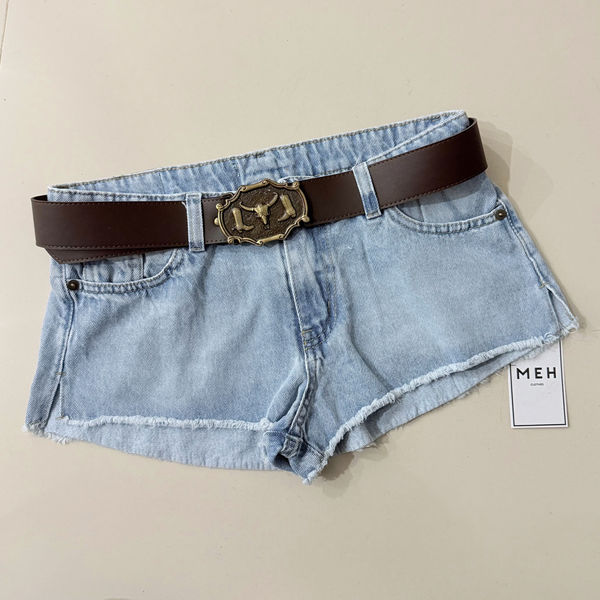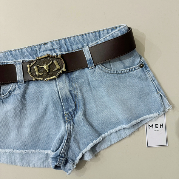 🔹 short HERMIS celeste, tiro bajo, con bolsillos clásicos en caderas y bolsillos cuadrados en la cola. Pequeño tajo lateral.