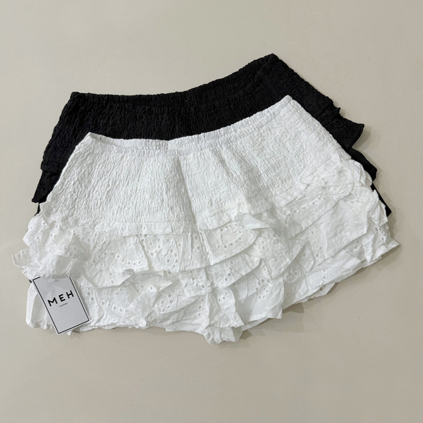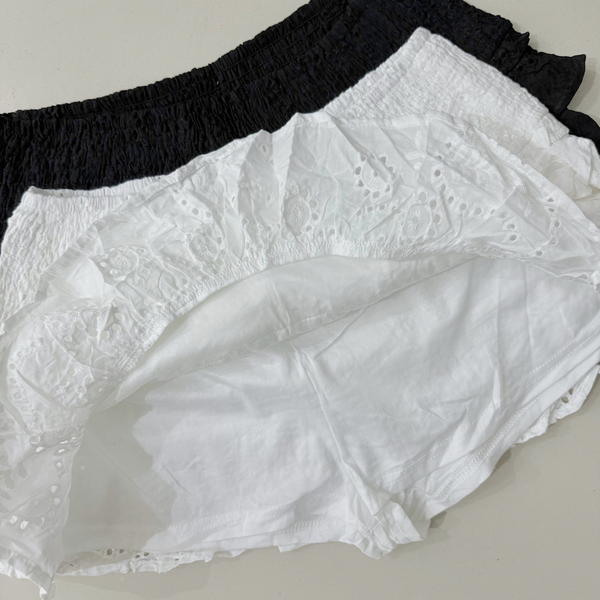 🔹 Short importado de broderie con con short interno, con frunce en cintura
