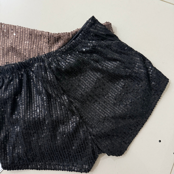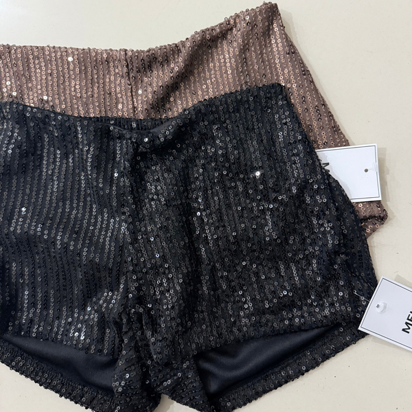 🔹 Short tiro alto de lentejuelas EVANS, con elastico en cintura.