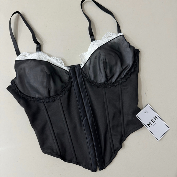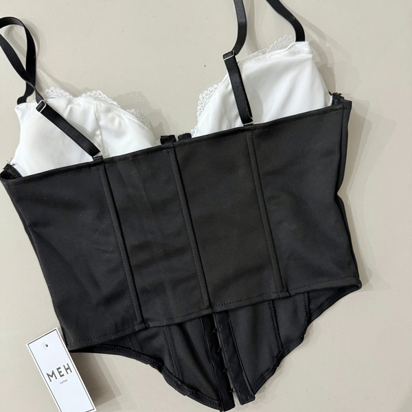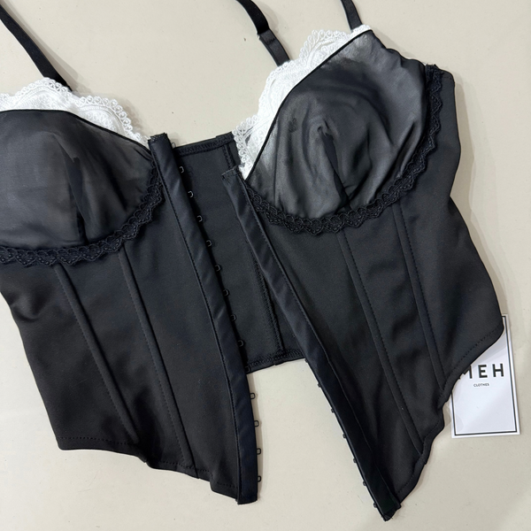 🔹 Corset MOKA con ballenas y broches medios corsetero, detalles en puntilla. Breteles regulables.