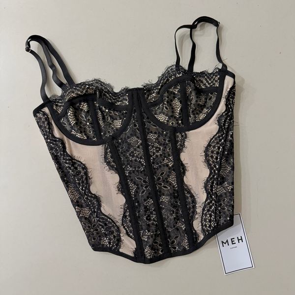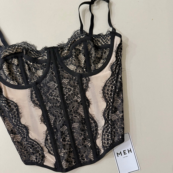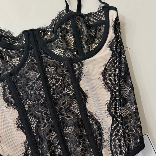 🔹 Corset PEKA, importado con detalles en encaje y Microtull beige. Con ballenas y regules en breteles. Posterior ajustable en 3 medidas con cinta corsetera