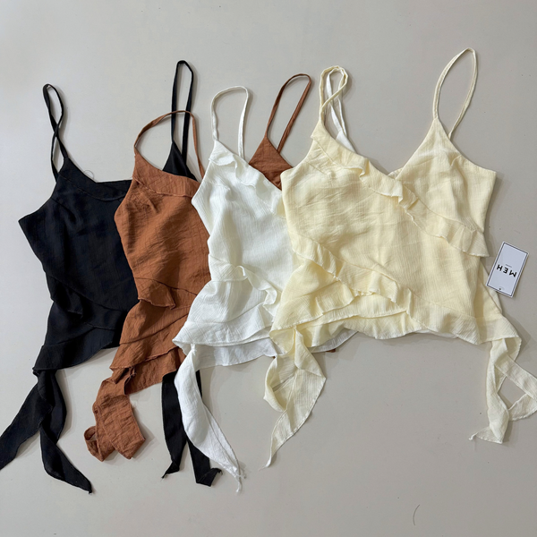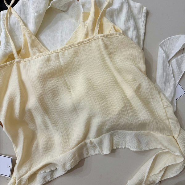 🔹 Top ARCANA, con sutiles volados cruzados y caída volados en ambos lados