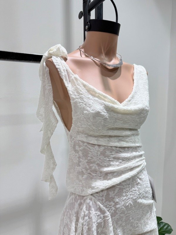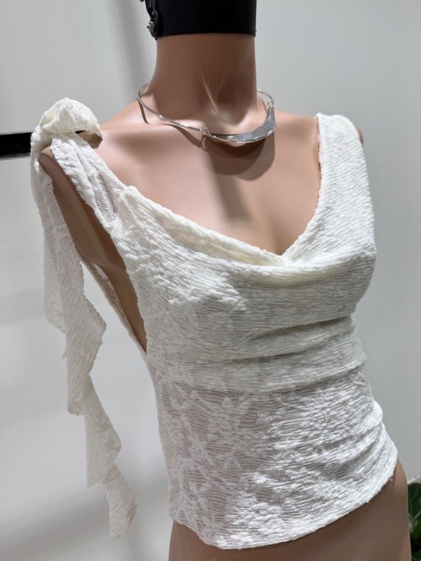 🔹 Top BRAT, un solo hombro, con volados para atar en el hombro, con corte asimetrico