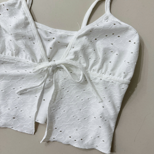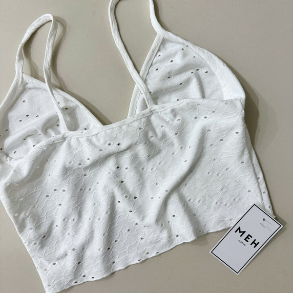 🔹 Top ISSA de broderie spandex, tipo crop con