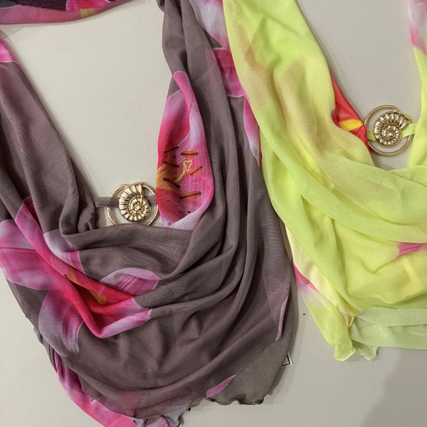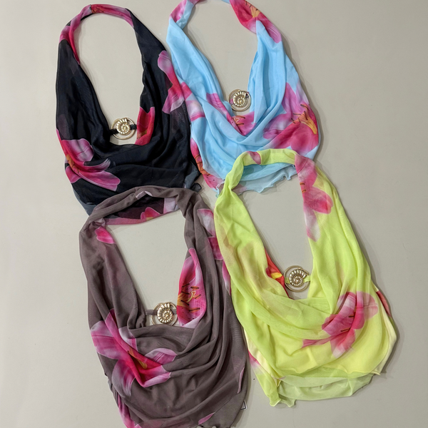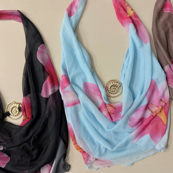 🔹 Top TULLI con cuello buche y avío metálico de caracol. De microtull estampado, con forro interno de microfibra
