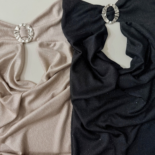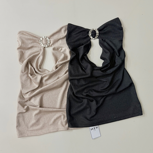 🔹 Vestido tipo Strapless de glitters con buche y avío medio, en los laterales sutiles frunces
