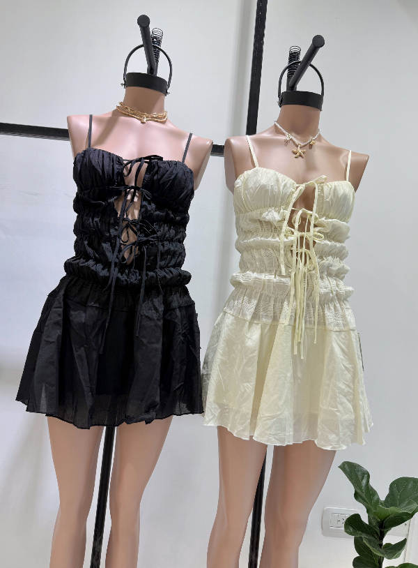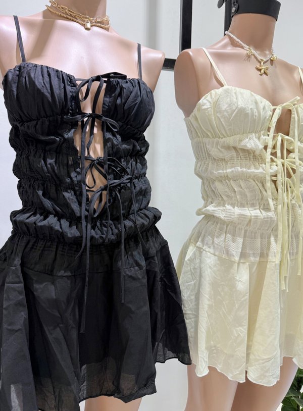 🔹 Vestido FELD, importado de poplin, con breteles regulables. Tiras para regular en el centro y sutiles frunces en todo su contorno.